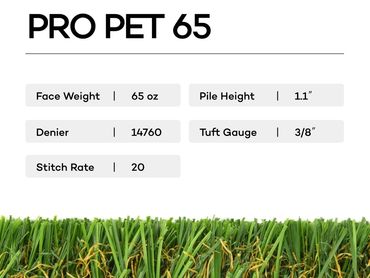 Pro Pet/Fringe Centipede Spectacle artificial turf is made with your lovable fury friends in mind. It's loosely tufted to increase waste run-off and drainage yet durable enough to withstand those accidents. Its soft texture and durable construction provide the ultimate comfort and play area. Its easy to maintain and clean, making it the perfect addition to any pet-loving home.